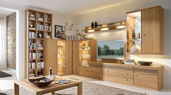 Funktionale Highlights sind der gedämpfte Frontenanschlag und der Softeinzug aller Schubladen, der ein angenehm leises Schließen ermöglicht. Gegen Mehrpreis erhalten Sie einige Wohnmöbel der Kombination mit energieeffizienter Beleuchtung. Durch den Typenplan mit einer großen Farb- und Typenauswahl können Sie das genaue Design der Wohnwand individuell an Ihren Geschmack anpassen. Auch weitere Artikel der Serie stehen Ihnen zur Verfügung - für ein rundum harmonisch eingerichtetes Wohnzimmer. Diese Elemente finden sie über die Produktnummer 483582-0003.
